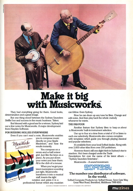<ref name="mz16749-softsel-musicworks">{{cite magazine|name=Softsel Musicworks|date=Jul 1985|title=Softsel Musicworks|page=59|url=https://muzines.benhall.co.uk/ad/16749|magazine=Electronics & Music Maker|publisher=Music Maker Publications (UK), Future Publishing.|location=United Kingdom|access-date=2026-04-25}}</ref>[{{cite magazine|name=Softsel Musicworks|date=Jul 1985|title=Softsel Musicworks|page=59|url=https://muzines.benhall.co.uk/ad/16749|magazine=Electronics & Music Maker|publisher=Music Maker Publications (UK), Future Publishing.|location=United Kingdom|access-date=2026-04-25}}]