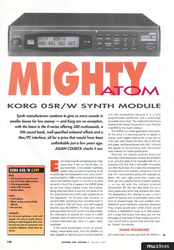 Korg 05R/W Synth ModuleArticle from Sound On Sound, October 1993 | |