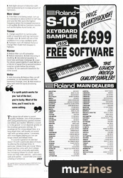 More than any other sampler I've come across, the S-10 offers a simple, sensible, practical introduction to the technology. The 1.1 second sampling time is an acceptable basic to work with, but is easily extended, and the frequency response is fine. That £1,000 barrier has a greater pyschological importance than the extra nought. When it can be done for less than a grand, people start thinking it can be done for £800, then £700, then under £500. That's how it was with the first affordable, polyphonic synths. Despite the success of the Ensoniqs and Akais it could be the S-10 that really kicks off the battle for affordable samplers. But for the time being, if there are keyboard players who want to break into self-contained sampling without breaking into a bank in the process, this is where it starts.