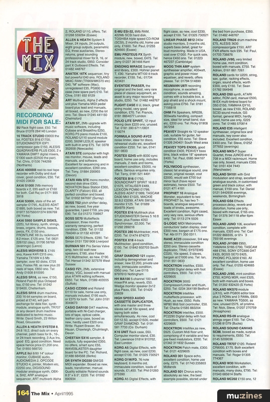 Article Group: Mixing it!What, where, when and with who | Article Group: Control RoomPreview of Roland's latest products | EMU ESI-32Affordable sampling from an original thinker | Mackie LM 320416 stereo channel rackmount mixer | | A real mother and a real steal | MoTU FreestyleInteractive Mac sequencing | Silica CD-ROMsA selection of PC CD-ROM drives | Practical studio furniture | Samson Servo 150Studio power for your monitoring | | Behringer De-NoiserGive your recordings a spring clean | | |