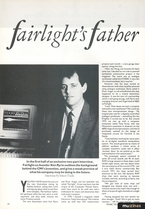 TechTalk: Kim Ryrie | Kim RyrieIn an exclusive interview, the co-founder of the Fairlight company and father of the CMI talks about the machine's development, and outlines his plans for the future. Simon Trask pops the questions. |