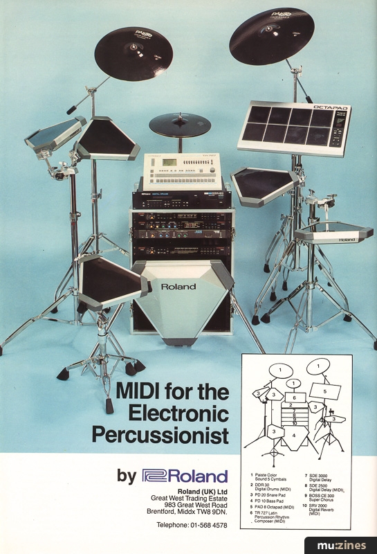 <ref name="mz11131-roland">{{cite magazine|name=Roland |date=Jan 1986|title=Roland |page=72|url=https://www.muzines.benhall.co.uk/ad/11131|magazine=International Musician & Recording World|publisher=Cover Publications Ltd, Northern & Shell Ltd.|location=United Kingdom|access-date=2026-04-19}}</ref>[{{cite magazine|name=Roland |date=Jan 1986|title=Roland |page=72|url=https://www.muzines.benhall.co.uk/ad/11131|magazine=International Musician & Recording World|publisher=Cover Publications Ltd, Northern & Shell Ltd.|location=United Kingdom|access-date=2026-04-19}}]