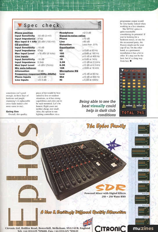 <ref name="mz22541-citronic-ephos-sdr">{{cite magazine|name=Citronic Ephos SDR|date=Apr 1995|title=Citronic Ephos SDR|page=67|url=https://www.muzines.benhall.co.uk/ad/22541|magazine=The Mix|publisher=Music Maker Publications (UK), Future Publishing.|location=United Kingdom|access-date=2026-04-28}}</ref>[{{cite magazine|name=Citronic Ephos SDR|date=Apr 1995|title=Citronic Ephos SDR|page=67|url=https://www.muzines.benhall.co.uk/ad/22541|magazine=The Mix|publisher=Music Maker Publications (UK), Future Publishing.|location=United Kingdom|access-date=2026-04-28}}]