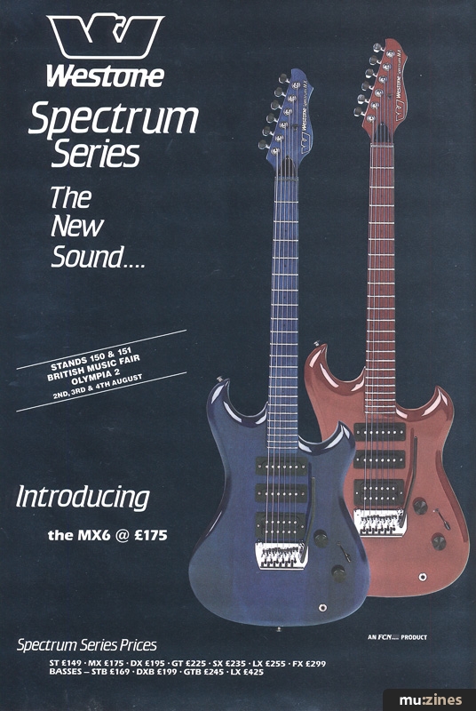<ref name="mz23377-westone-spectrum-mx6">{{cite magazine|name=Westone Spectrum MX6|date=Aug 1985|title=Westone Spectrum MX6|page=8|url=https://www.muzines.benhall.co.uk/ad/23377|magazine=International Musician & Recording World|publisher=Cover Publications Ltd, Northern & Shell Ltd.|location=United Kingdom|access-date=2026-04-19}}</ref>[{{cite magazine|name=Westone Spectrum MX6|date=Aug 1985|title=Westone Spectrum MX6|page=8|url=https://www.muzines.benhall.co.uk/ad/23377|magazine=International Musician & Recording World|publisher=Cover Publications Ltd, Northern & Shell Ltd.|location=United Kingdom|access-date=2026-04-19}}]