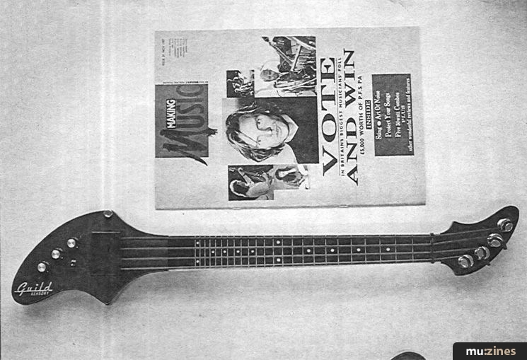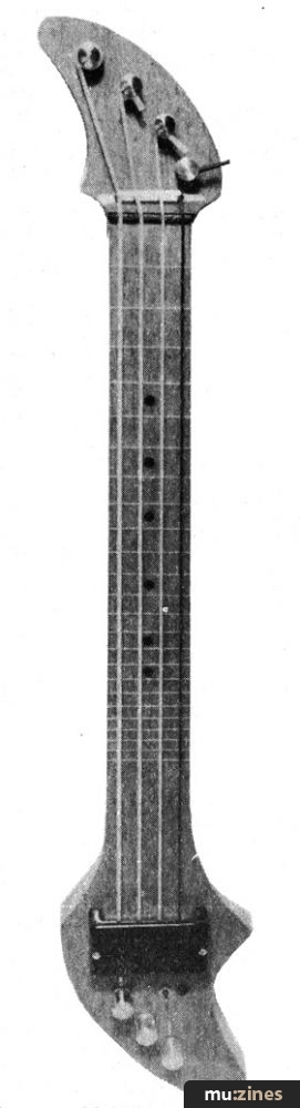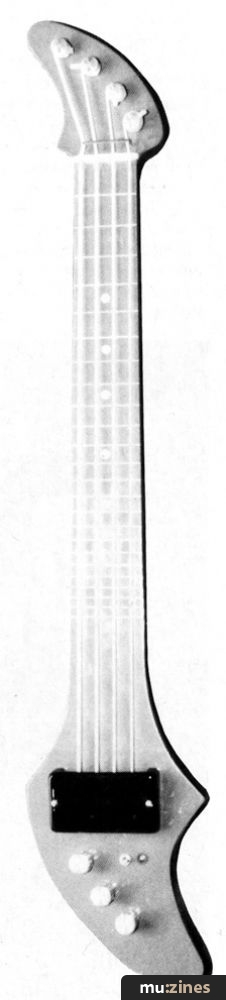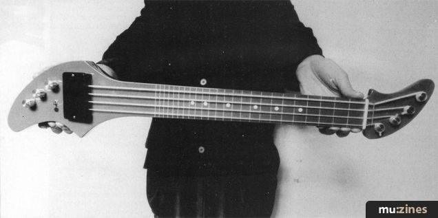 I think everybody smiles when they first take the little fellow out of his bag. The Ashbory has a scale of merely 18in, and a poplar wood body weighing 3lbs. More precisely, the 'body' is simply a neck, widened at one end to take the bridge and controls, with a small headstock at the other, fitted with modified Schaller banjo pegs. A highly lacquered fretless 'fingerboard' is, in reality, part of the poplar neck, bound and marked in the conventional way.