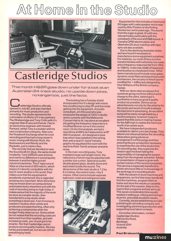Castleridge StudiosArticle from Home & Studio Recording, June 1986 | |