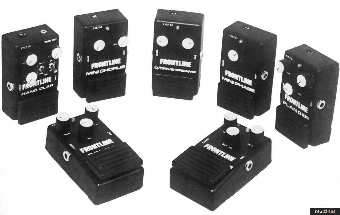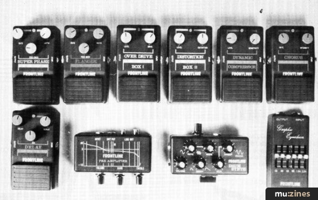 £69.95) is a nice unit, bearing in mind the limitations of the genre. With electric pickups it is a little disappointing around about the D on the first — plenty of clunking repeats but not a lot of floating about and singing. Top end loss is inevitably quite considerable. On a harmonically much richer electric-acoustic, though, this is less of a problem and this unit will serve a picker very adequately for a minimum of inconvenience. The Frontline is no exception to any of the general rules, and within its terms of reference performs satisfactorily.