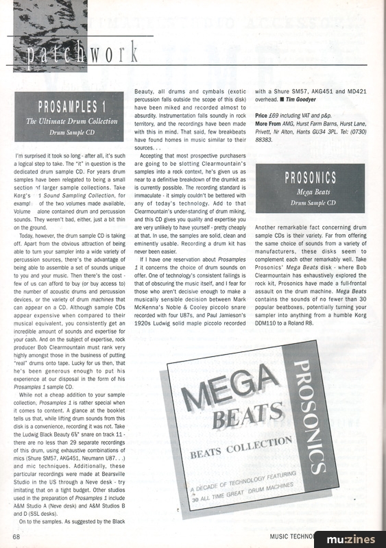 Acoustic drum samples from producer Bob Clearmountain rub shoulders with Mega Beats drum machine samples, while SSU sounds for the Yamaha SY77 complete the lineup in this month's Patchwork.