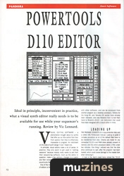 RUNNING THIS EDITOR with a sequencer which can edit in real time opens up a new area of creativity. Record note information so that the D110 is playing, start the sequencer in record mode and use the hot keys to drop the editor onto the screen. Any edits that you now make are recorded onto the sequencer as SysEx data, and your edits will be recreated on playback. I tried this with C-Lab's Creator and found that it worked a treat. Little things like altering the TVF resonance or changing the level and depth of the reverb (which would be impossible from the front panel of the D110) can be achieved with ease. An editor like this goes some way to bringing back the halcyon days of analogue synths.