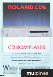 The Roland CD5 is the first CD ROM player to be produced by a musical instrument company, aimed specifically at musicians and a particular make of sampler. Nevertheless, it's not the first CD ROM player to be offered to sampler users: a CD ROM drive from Optical Media has been available for a while, which allowed anyone with a Mac and Universal Sound Designer software access to several discs of sample files, which could then be transferred to any compatible sampler (eg. Emulator II, III, Emax). However, it never seemed to arouse much interest, probably for the simple reason that the Macintosh is too expensive to be a popular music computer in the UK. The CD5, on the other hand, only requires that you have a slightly modified S550, to which samples can be transferred direct.