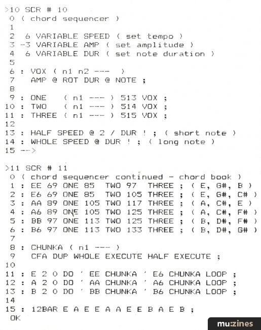 There are a wealth of possible effects, and experimenters might consider utilising the BBC's noise channel (channel 0) to produce repeating percussion patterns as well as musical notes — although the right settings on Arp as it stands can create some intriguing percussive effects.