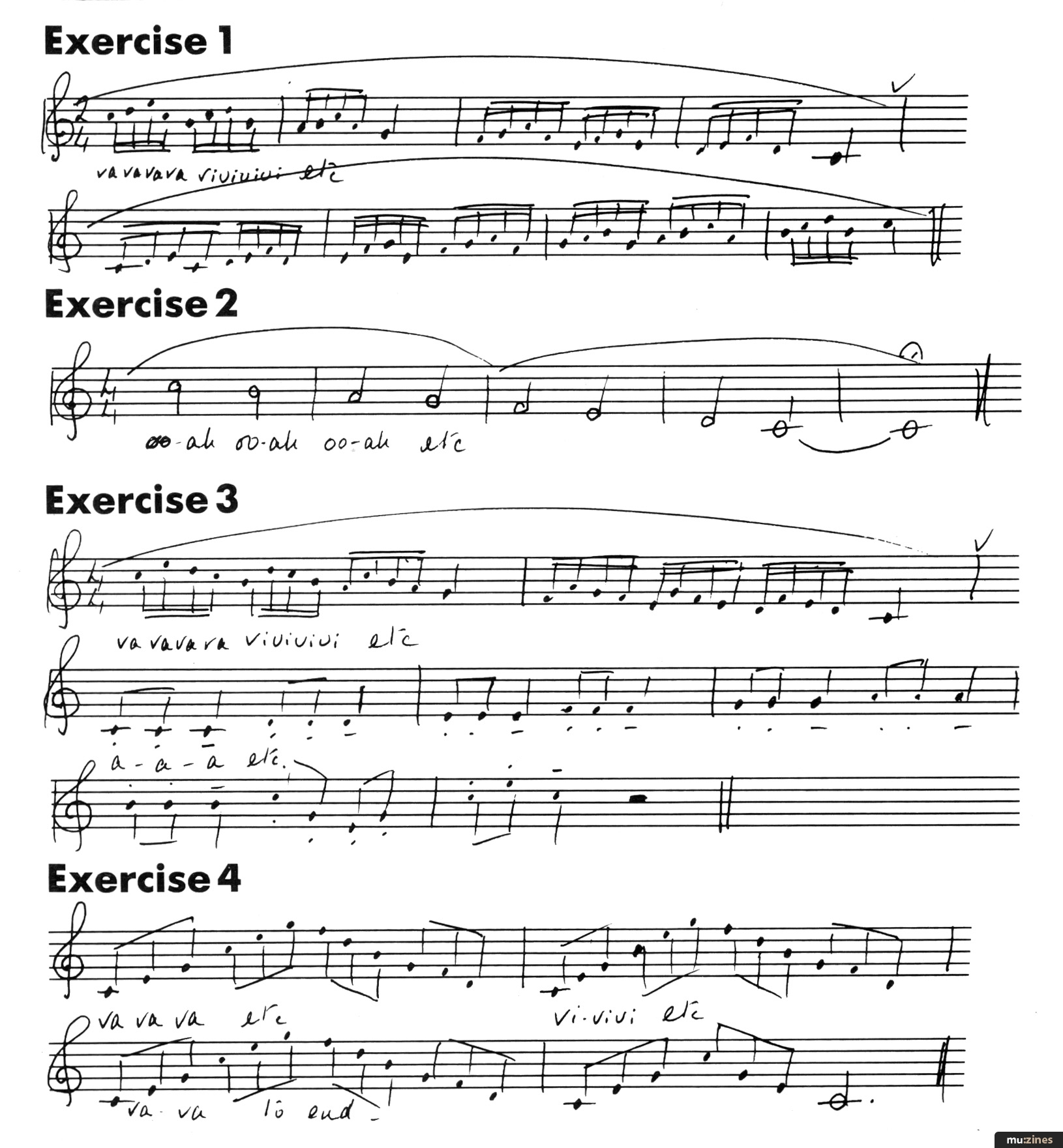 It is difficult to describe these vocalise without using notation: however, for those of you who don't read music I have made a cassette which has these exercises and a good many more on it.