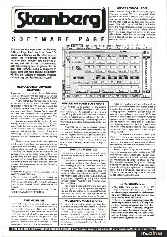 The second of an ‘experimental’ column devoted entirely to Steinberg software. Written and compiled exclusively for SOS by Steinberg's experts, it contains hot news of current and forthcoming software revisions plus ‘in-house’ tips and tricks on its use. Read on and respond! |