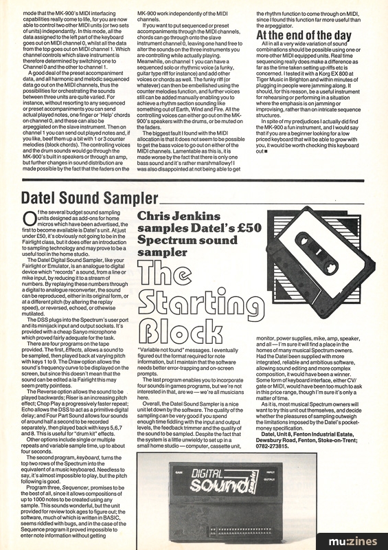 Datel Sound SamplerDatel's Spectrum-compatible Sound Sampler offers a genuine introduction to the techniques of sound sampling. We listen in. |